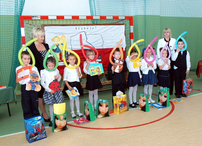 Pierwszacy na swoją uroczystość wkroczyli tańcząc poloneza. Następnie dali krótki popis swoich umiejętności. Po czym złożyli ślubowanie i zostali przez Panią Dyrektor pasowani na ucznia.