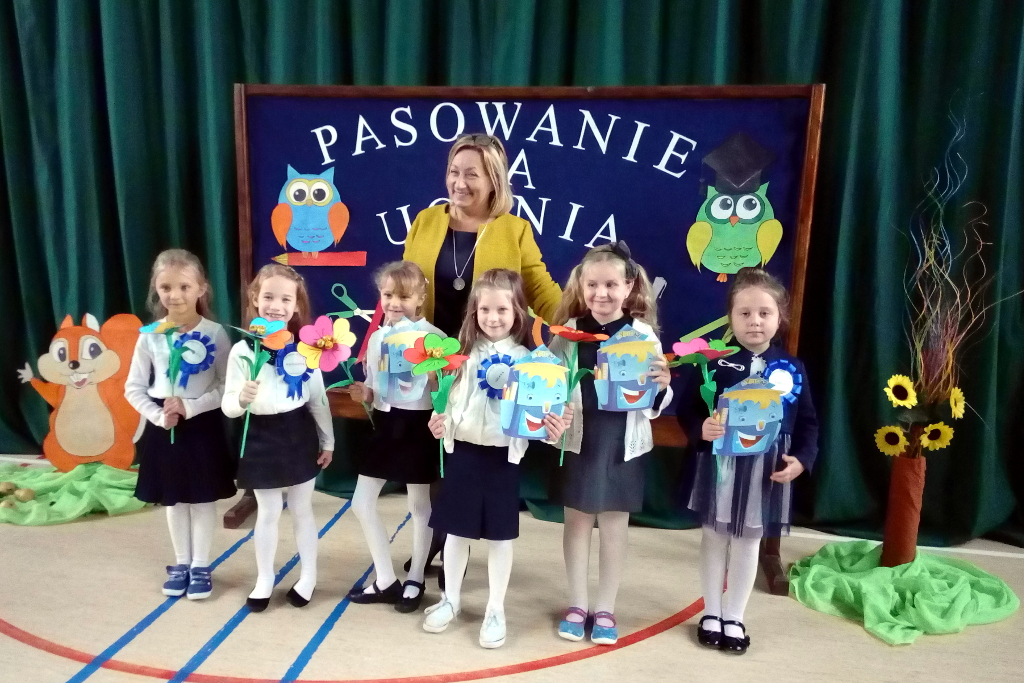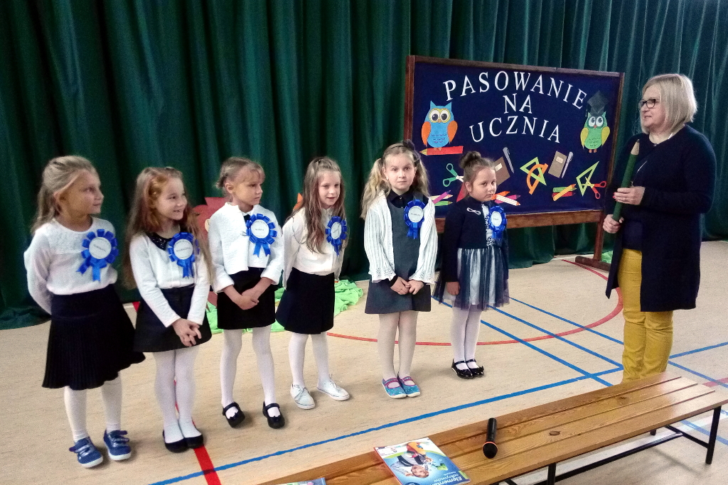 4 października 2017r. odbyło się w naszej szkole uroczyste ślubowanie i pasowanie dzieci na uczniów. Magdalena Czerniak, Emilia Kumiega, Karolina Łączak, Milena Madej, Karina Ortyl, Karolina Piwowar zaprezentowały wiedzę i umiejętności, które zdobyły w pierwszym miesiącu nauki w szkole. Z wielkim zaangażowaniem recytowały wiersze i śpiewały piosenki. Po części artystycznej i uroczystym ślubowaniu pani dyrektor T. Jakubiak pasowała dziewczynki na uczennice Szkoły Podstawowej w Korzeniowie. Na koniec uroczystości rodzice, oraz zaproszeni goście wręczyli pierwszoklasistkom upominki - niespodzianki.
