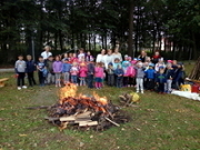 19 września 2017 roku dzieci z Oddziałów Przedszkolnych i klas I-III wraz z Wychowawczyniami spotkały się przy ognisku, aby świętować Dzień Pieczonego Ziemniaka. Dzieci w tym dniu przypomniały sobie zasady bezpiecznego zachowania w pobliżu ogniska i poszerzały swoją wiedzę na temat ziemniaków. Celem naszego spotkania było również zintegrowanie dzieci poprzez wspólną zabawę, a także promowanie aktywności dzieci na świeżym powietrzu. W oczekiwaniu na ziemniaczki dzieci piekły kiełbaski. Pobyt na świeżym powietrzu robi swoje, humory i apetyt dopisywał wszystkim.